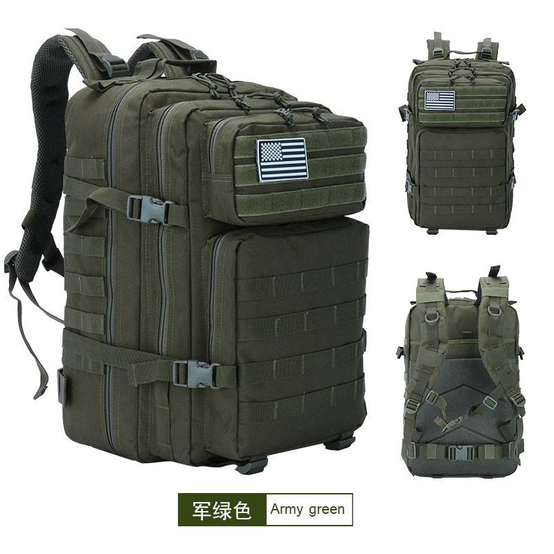 LARGE CAPACITY & Free Gift Kits: Military Tactical backpack size approx.:19.7″*11.8″*11.8″ / 50*30*30CM (W*H*D), Capacity: 45L. It is designed for 3 days trip and is large enough to carry all your gear. Come with 15 Pcs Free Gifts Accessories — 6 x D-ring Grimlock locking clip, 4 x Web Dominator Elastic Strings, 2 x Web Dominator Elastic Strings, 2 x Hydration tube Clip,1 x Removable flag patch.