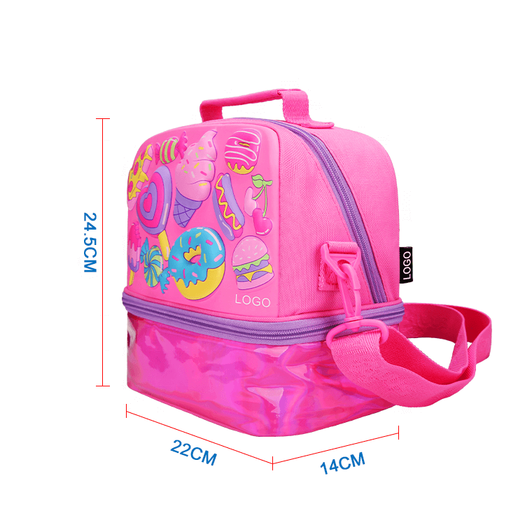 2 Compartments with Double Zips and Shoulder Strap Kids Non-Toxic Tiffin Box Case Bag for School